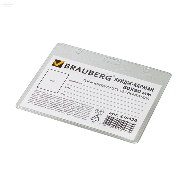 Отзывы к "Бейдж-карман 90х60 мм горизонтальный с отверстием прозрачный PET BRAUBERG":