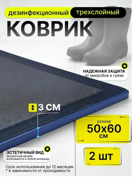 Отзывы к "Дезковрик ЭКО 50х60х3 см антибактериальный трёхслойный Абис":