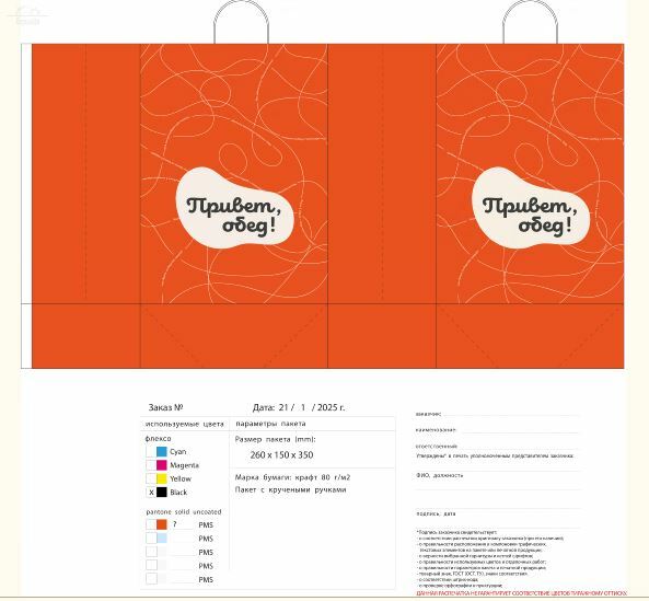 Отзывы к "Пакет с кручеными ручками 260х150х350 Привет обед":