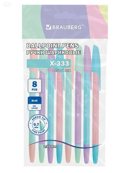 Отзывы к "Ручки шариковые BRAUBERG "X-333 PASTEL MIX", НАБОР 8 ШТУК, СИНИЕ, узел 0,7 мм, линия письма 0,35 мм":