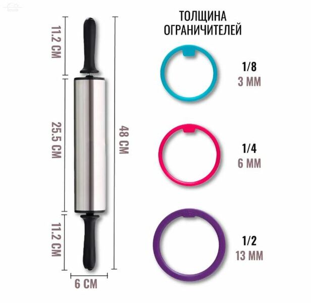 Отзывы к "Скалка металл/пластик 25,5/48 см D6 см с вращающимися ручками с 3 ограничителями ":