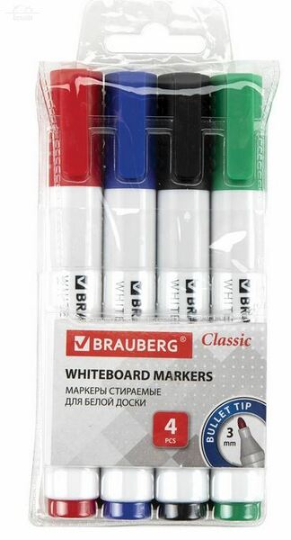 Отзывы к "Маркеры стираемые для белой доски НАБОР 4 ЦВЕТА, BRAUBERG "CLASSIC", 3 мм, с клипом":