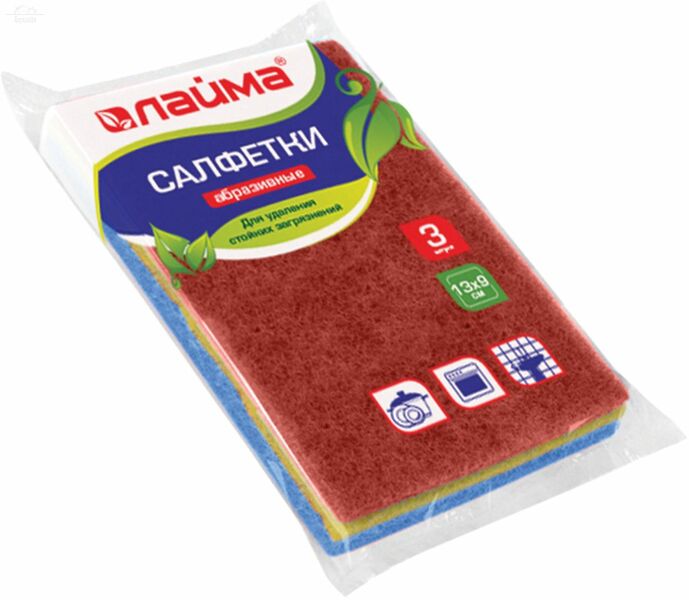 Отзывы к "Салфетка для уборки 13х9х0,5 см 3 шт/уп абразивная ЛАЙМА разноцветный":